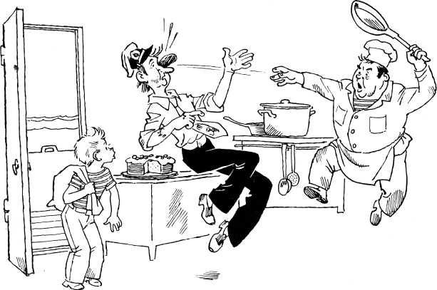Солнышкин стоял сбоку. Наконец-то он находился на палубе! Щёки его горели, а язык уже чувствовал вкус настоящей флотской котлеты.