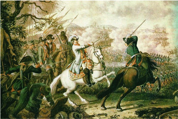 А в это время тяжелая прусская кавалерия, сияя сталью палашей, врубалась в русское каре. Фронт был прорван. Кирасиры рубили подряд всех, кто попадал им под руку.