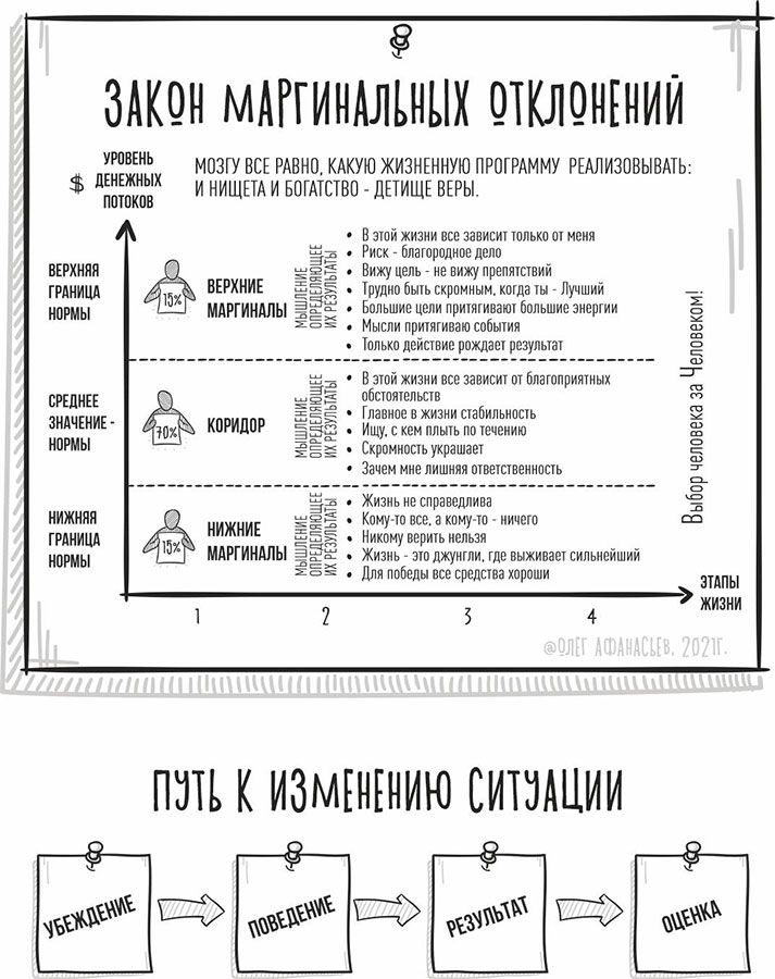 Именно эти отличия мы хотим представить «в крупную клетку» в нашей схеме «Закон Маргинальных Отклонений» и очень надеемся, что нам удалось донести свою главную идею о причинах богатства и бедности. И главное – о возможности в любой момент своей жизни изменить ситуацию со своим денежным потоком к лучшему.
