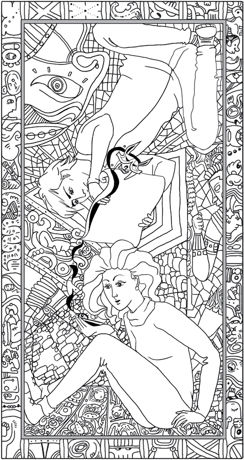 С фонариком в руке я подошла к месту падения, пришедшее точно на изображение круглого помещения. Прямоугольный по форме, он приземлился внутренней частью вверх. С этой стороны он походил на амулет, центр которого занимала голова. Она настолько доминировала на рисунке, что изображенное на заднем плане не воспринималось никак. Вид головы внушал боязнь и опасение: округлые, устрашающего вида, вселяющие страх глаза, казалось, были готовы наполниться самой дикой злобой и от этого в любую секунду засверкать. Выражение озлобленности на лице дополнял саблезубый оскал. Венчали агрессию рога. Они, готовые подавлять всех и вся, изогнулись навстречу Друг Другу, но, так и не встретившись, острыми концами воинствующе загибались вверх.