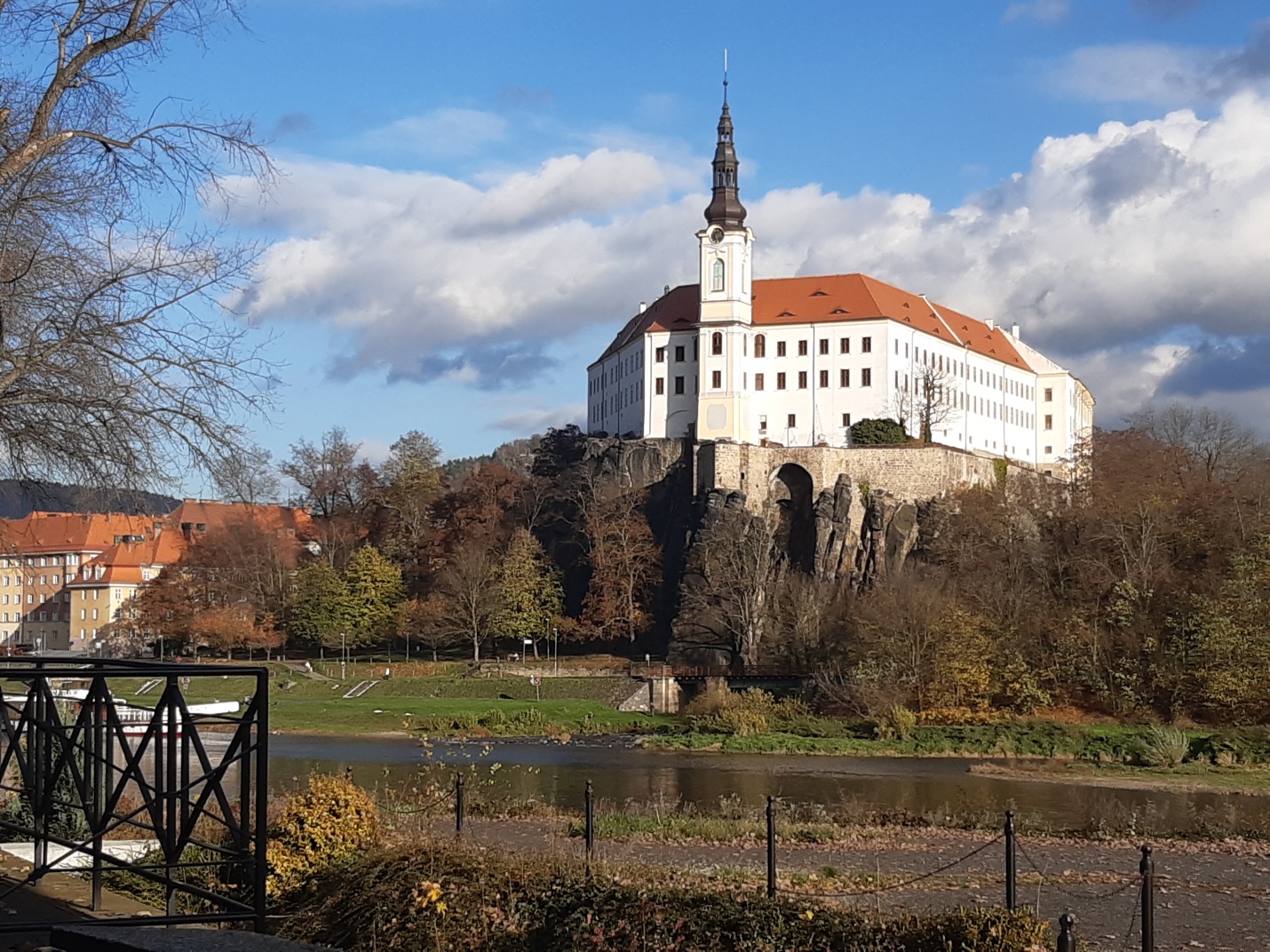 Теченский замок сегодня. На этом участке Эльбы была устроена запруда (фото автора, 2022 год).