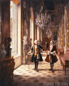 Король Фридрих и Вольтер беседуют во дворце Сан-Суси.