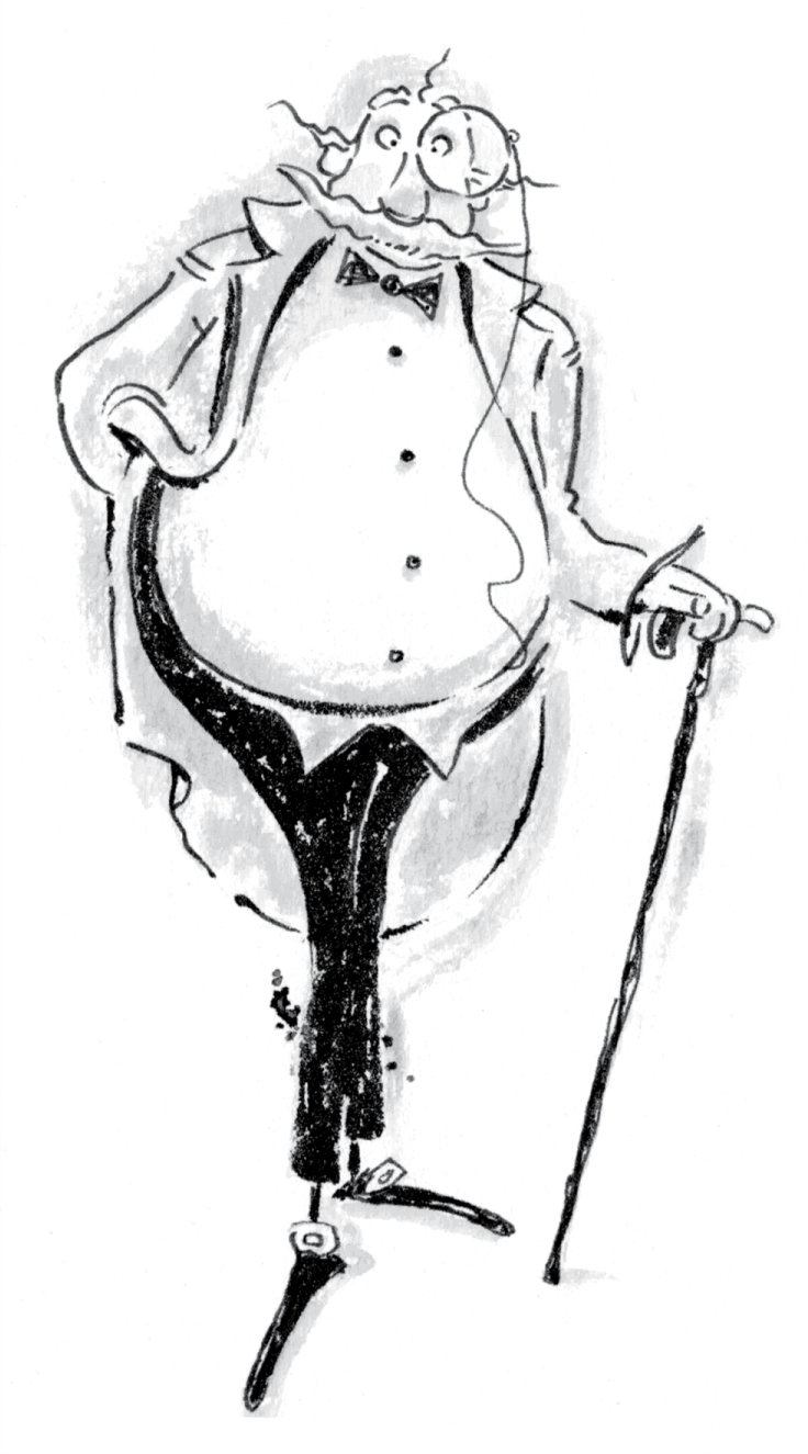 Сэм с победным кличем схватил верёвку и побежал обратно. Он мчался вниз, снова – через три ступеньки, и так торопился, что в конце концов упал, когда спрыгивал на подножие лестницы. Проворно поднявшись, он устремился к входной двери, но тотчас же врезался во что-то мягкое – как выяснилось, это был весьма внушительный живот дяди Арчибальда.