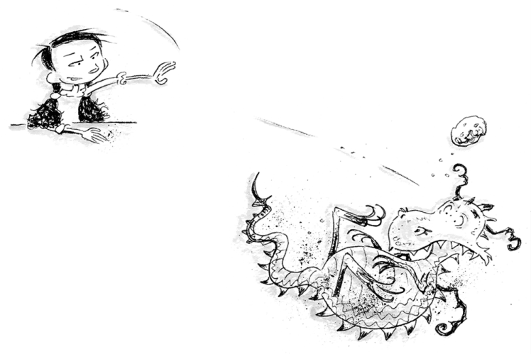 Тем временем малыш-дракон уже вскарабкался на стол и вознамерился слизать варенье с тарелки дяди Арчибальда. Тётя Эгг сняла баламута со стола.