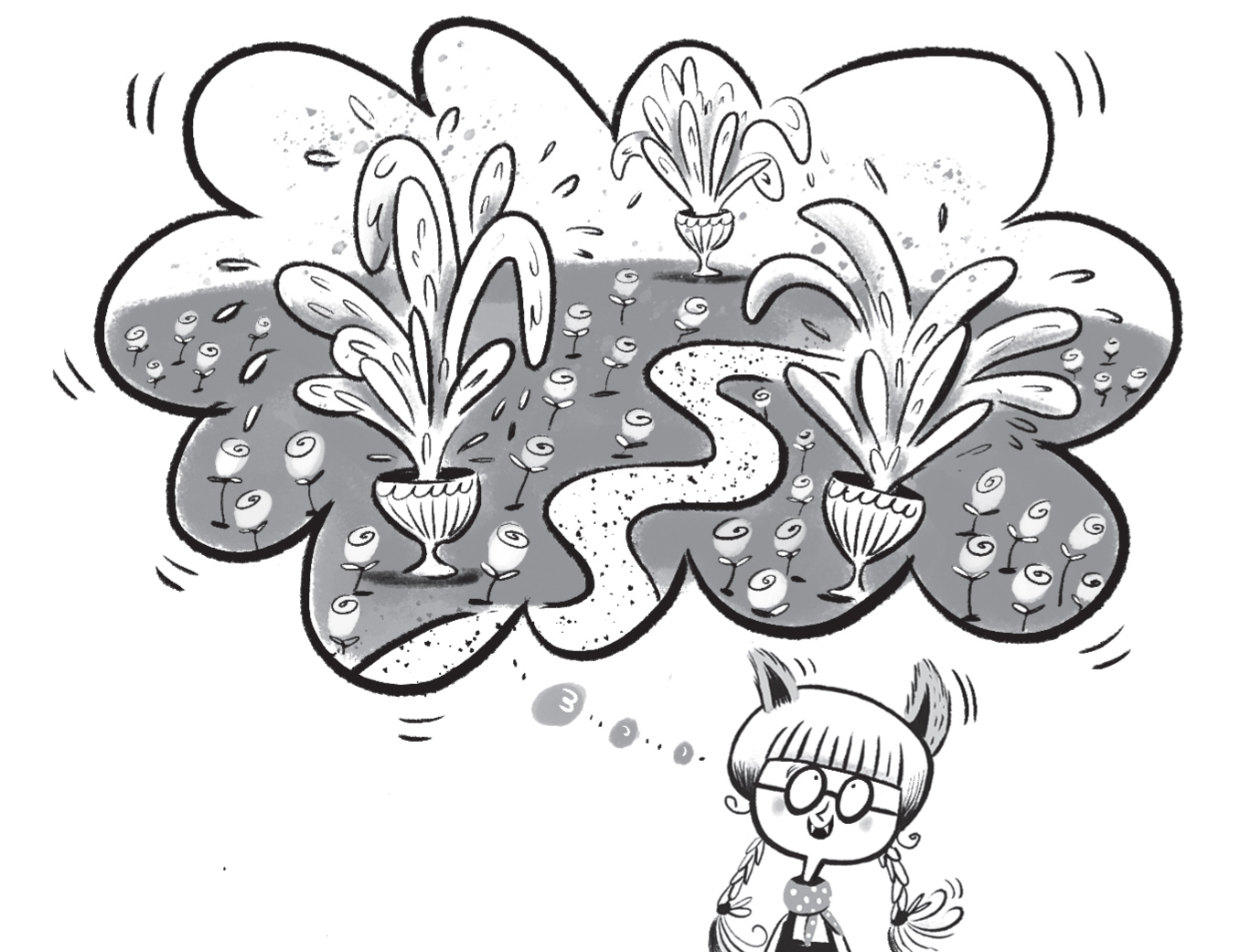 ‘This land has been allowed to grow wild,’ Mrs Wilkolak went on. ‘A businessman wants to buy it, but the owner says that if we can make it beautiful she’ll give it to us instead. It would be wonderful to have that extra bit of space at the back of the school. So every pupil is going to draw their dream design, and the head teacher, Mrs Grubeloff, is going to choose the best one. Do you like gardens and flowers?’