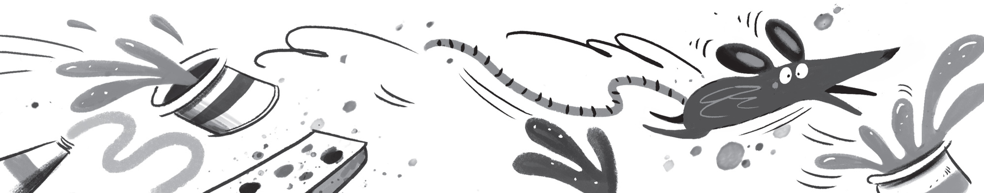 ‘My rat’s terribly badly behaved,’ Wilf said cheerfully. ‘He crept into Mrs Wilkolak’s cupboard last week, and knocked all the paint pots over, so now he’s banned.’ He giggled. ‘You should have seen the mess!’