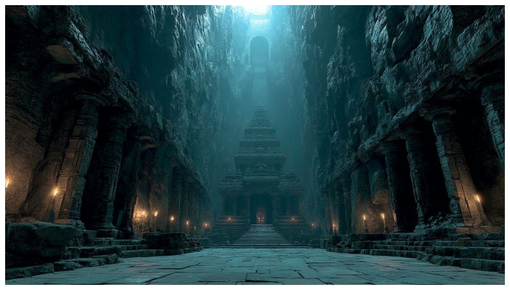 Перед нами раскинулось пространство, столь необъятное, что разум отказывается верить в его естественную природу. Это не просто впадина в недрах горного массива, а нечто среднее между пещерой и античным амфитеатром. Пол ровный и покрыт широкими плитами, потемневшими от времени, стены уходят вверх и вширь, формируя нечто вроде полукруга, но взгляд не находит границ.