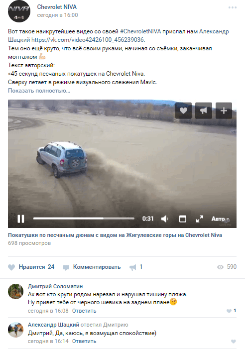 Самое первое, что вы должны сделать – это регулярно мониторить личные профили самых лояльных и активных ваших клиентов. Как только человек размещает какие-либо впечатления, связанные с использованием продукта или услуги, вы сразу репостите этот кейс в сообщество и вовлекаете автора поста в обсуждение.
