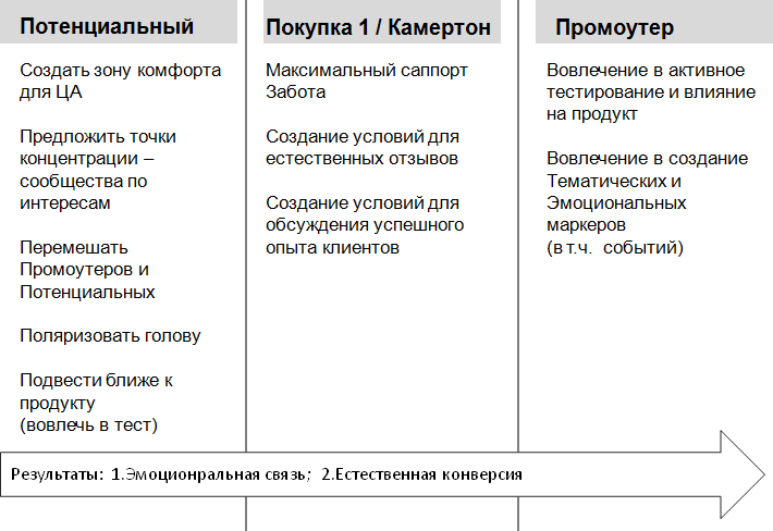 – во-первых, с помощью инструментов комьюнити-менеджмента мы имеем возможность сделать человека промоутером еще до момента первой покупки;