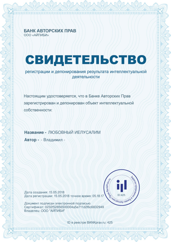 8) ЛЮБОВНЫЙ ИЕЛУСАЛИМ. КНИГА ЛЮБОВНОГО ИЕЛУСАЛИМА.