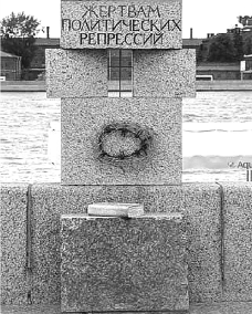 С «Крестами» неразрывно связаны монументы, установленные на противоположном берегу Невы. 28 апреля 1995 г. напротив «Крестов» по проекту Михаила Шемякина установлен мемориал «Жертвам политических репрессий» в виде двух бронзовых сфинксов на гранитных постаментах. К жилым домам на набережной эти необычные сфинксы обращены профилем, как юные женские лица, к Неве и тюрьме «Кресты» на противоположном берегу – изъеденные, обнажившиеся черепа. Между сфинксами на парапете набережной – стилизованное окно тюремной камеры с решеткой. По периметрам гранитных постаментов – медные таблички, на которых выгравированы строки из произведений Н. Гумилева, О. Мандельштама, А. Ахматовой, Н. Заболоцкого, Д. Андреева, Д. Лихачева, И. Бродского, Ю. Галанскова, А. Солженицына, В. Высоцкого, В. Буковского[347].