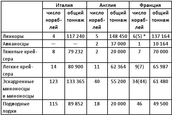 Соотношение основных сил флотов воюющих государств на Средиземном море на 10 июня 1940 г. *