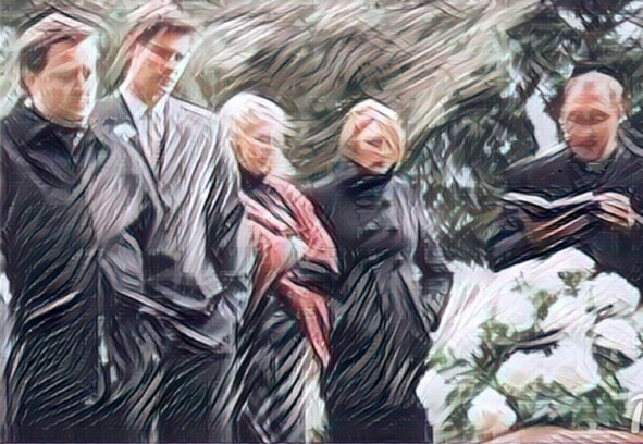 На площадке около кладбища собиралась похоронная церемония. В гробу лежал мужчина лет 45-и. Из слов провожающих его в последний путь я понял, что его убили и он был какой-то бизнесмен. У гроба стояла заплаканная вдова с родственниками. Вдова была прекрасна: траурная одежда ещё больше подчёркивала её красоту, я не мог оторвать взгляд от неё и, тем более, уйти. Да и идти было, по-сути, некуда.