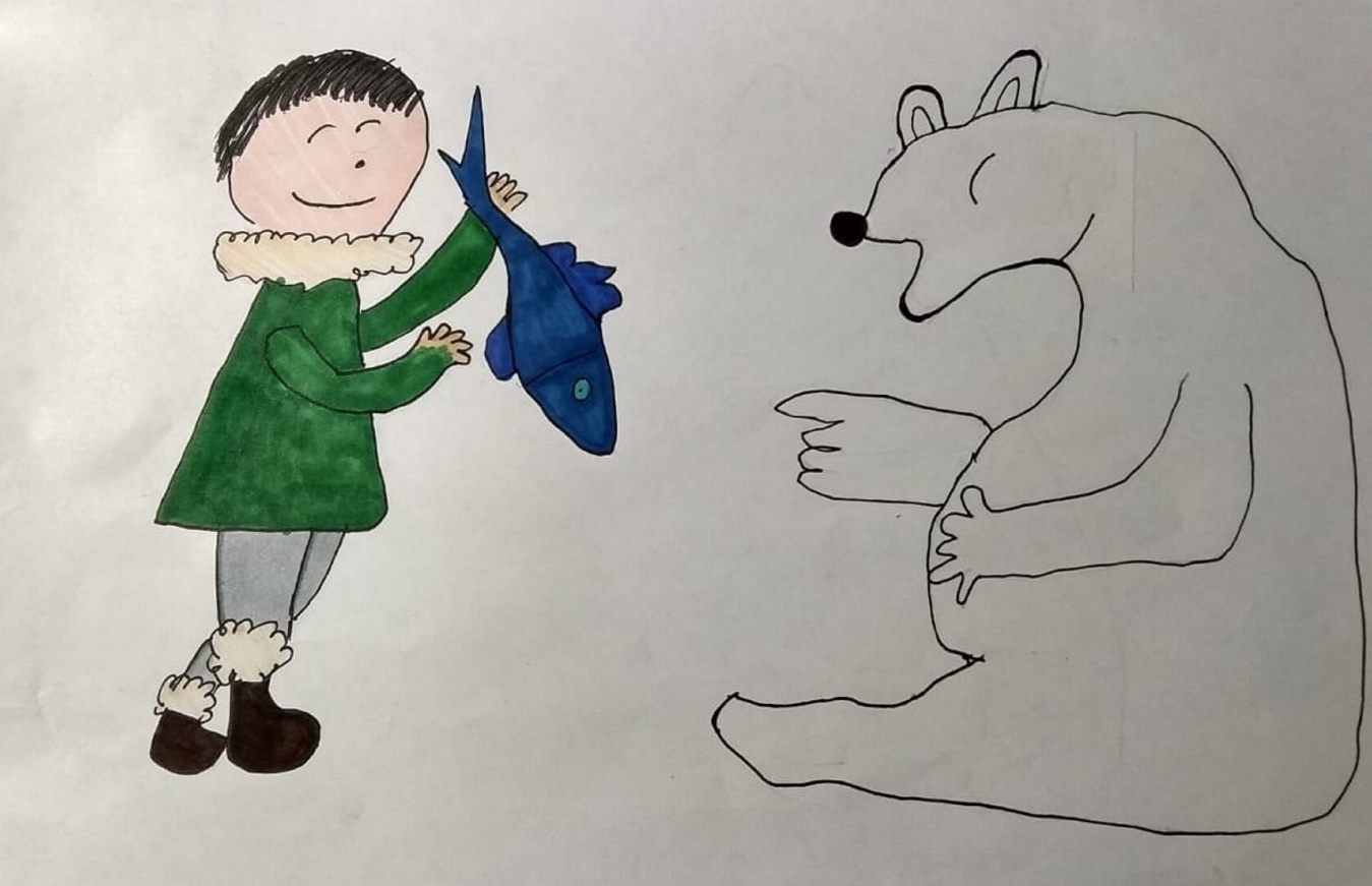 – Если поймаю большую рыбу, то отнесу хвост Старому Мудрому Чукче. Старик обязательно обрадуется и поблагодарит меня. Спинку отдам маме – она сделает из нее вкусную строганину, а голову рыбы я скормлю собаке. И всем будет хорошо!