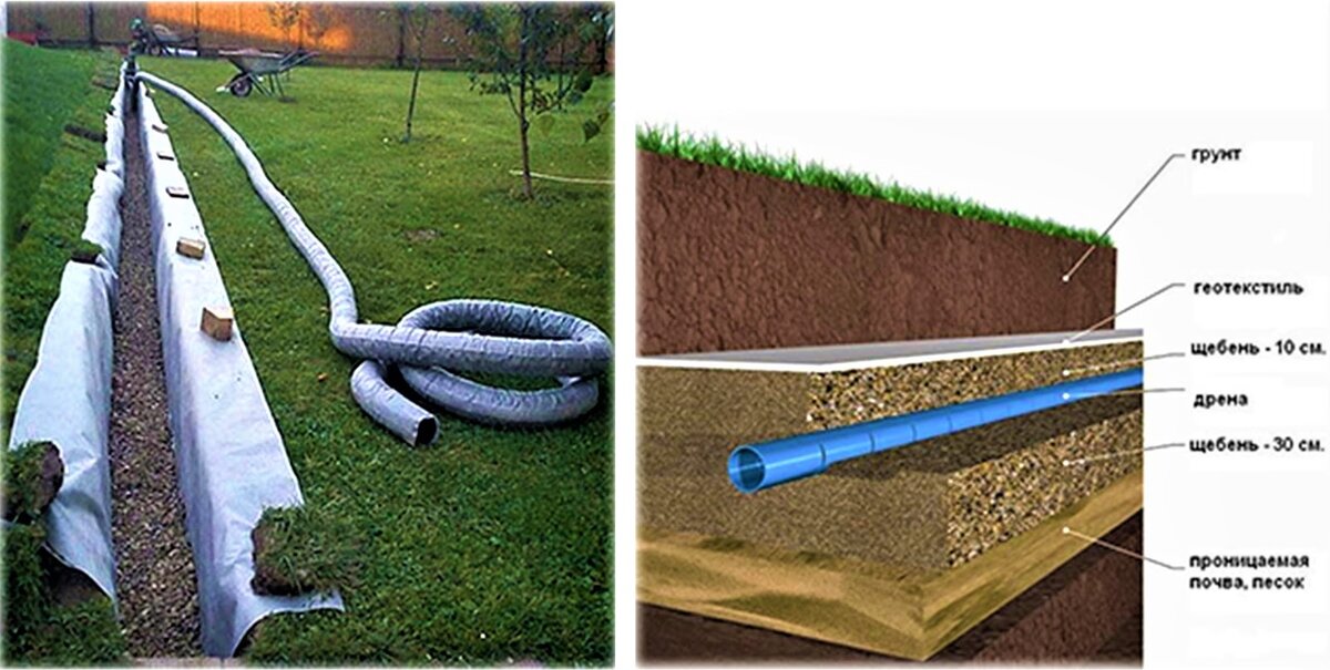 В дальнейшем на этом месте можно делать грядки или разбивать газон. Снаружи остается только одна вертикально выведенная из земли труба, соединенная с дренажными трубами. Ее обычно накрывают крышкой, отступив от края трубы 2-3 сантиметра, чтобы внутрь «призмы» не попадала влага от атмосферных осадков.