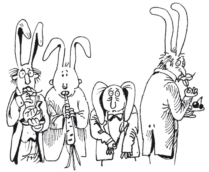 И вот в наши дни, для того чтобы просто получить аккорд из четырех звуков, на сцене сидят четыре здоровых мужика во фраках, с валторнами в руках и, между прочим, высшим образованием за плечами. Чтобы изобразить хорал длиной два такта в «Картинках с выставки», на сцене сидят – тоже во фраках – и мелко трясутся два гобоиста и рожкист. Чтобы сыграть мотивчик из «Болеро» Равеля размером в шестнадцать тактов, на сцене сидит, как и все, во фраке тромбонист, которого в день концерта колбасит и плющит уже с утра. С чувством огромной ответственности стоит на сцене ударник с большой колотушкой, которой он должен один раз за весь концерт треснуть по тамтаму. Желательно вовремя.