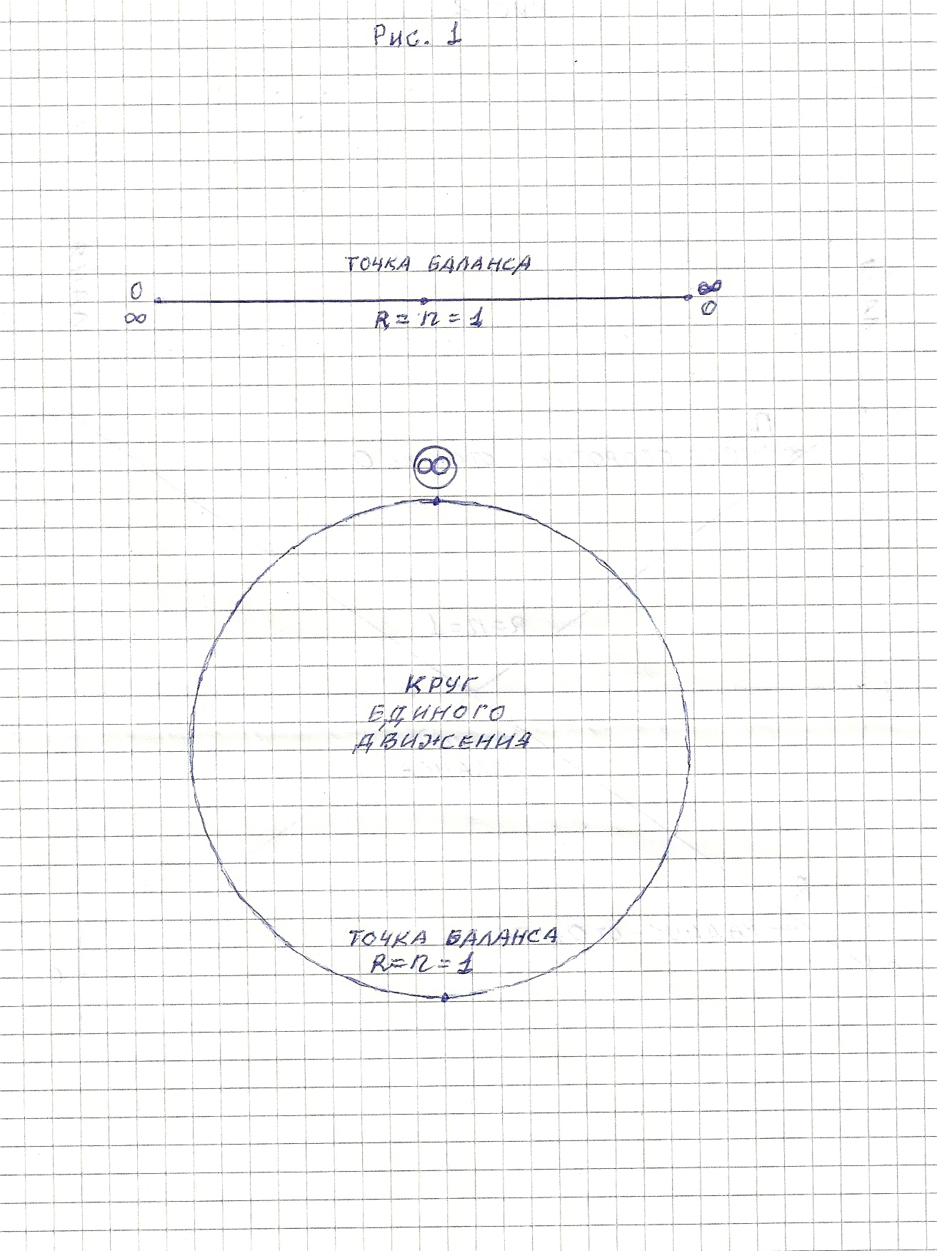 Очевидно, что Единое Движение, как принцип движения, есть – движение по кругу, оно начинается и заканчивается в одной и той же нулевой точке. Линия Единого Движения есть развернутая окружность. (Рис.1)