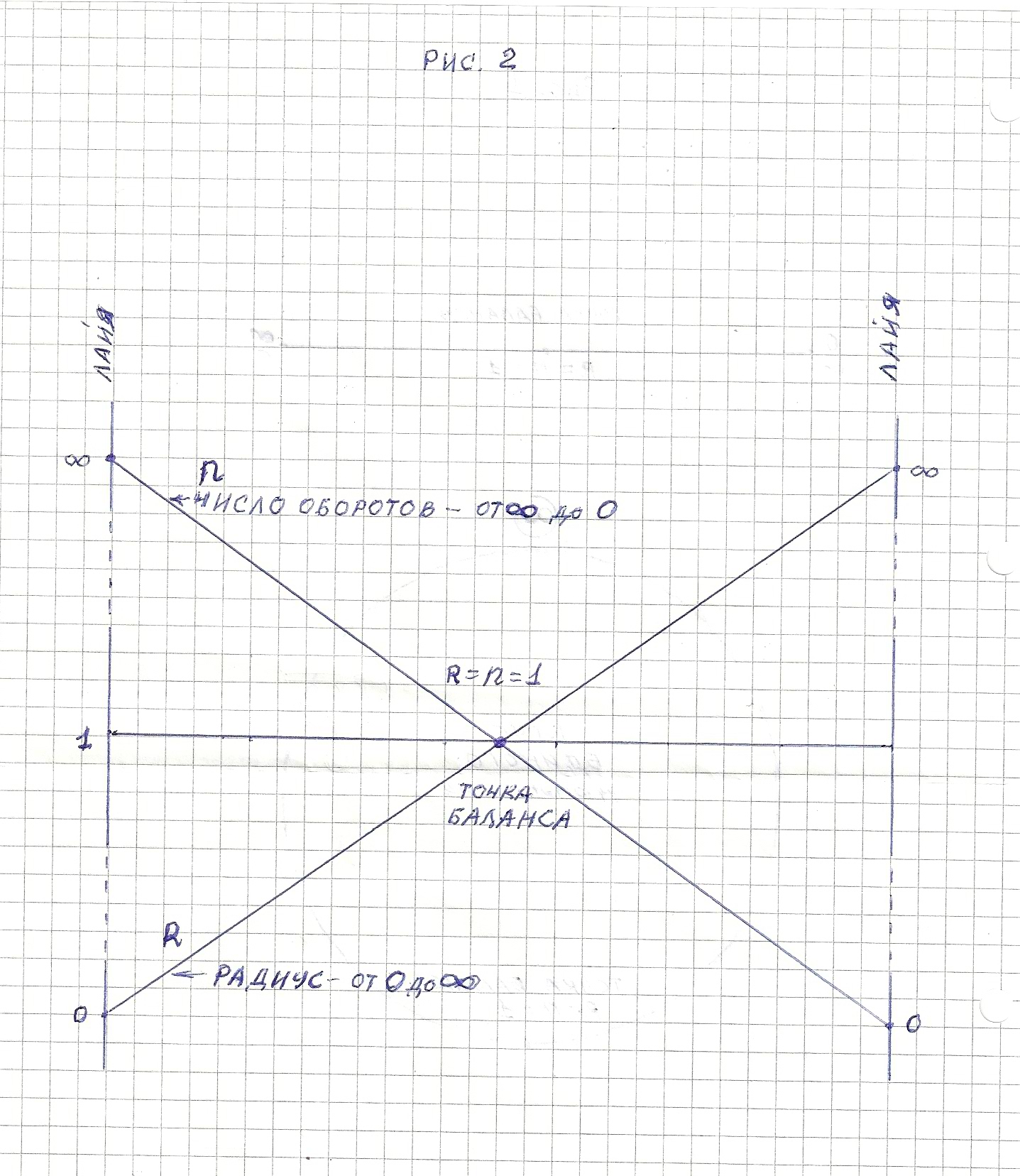 Упрощенно R х N = 1 – произведение радиуса на число оборотов равно единице.