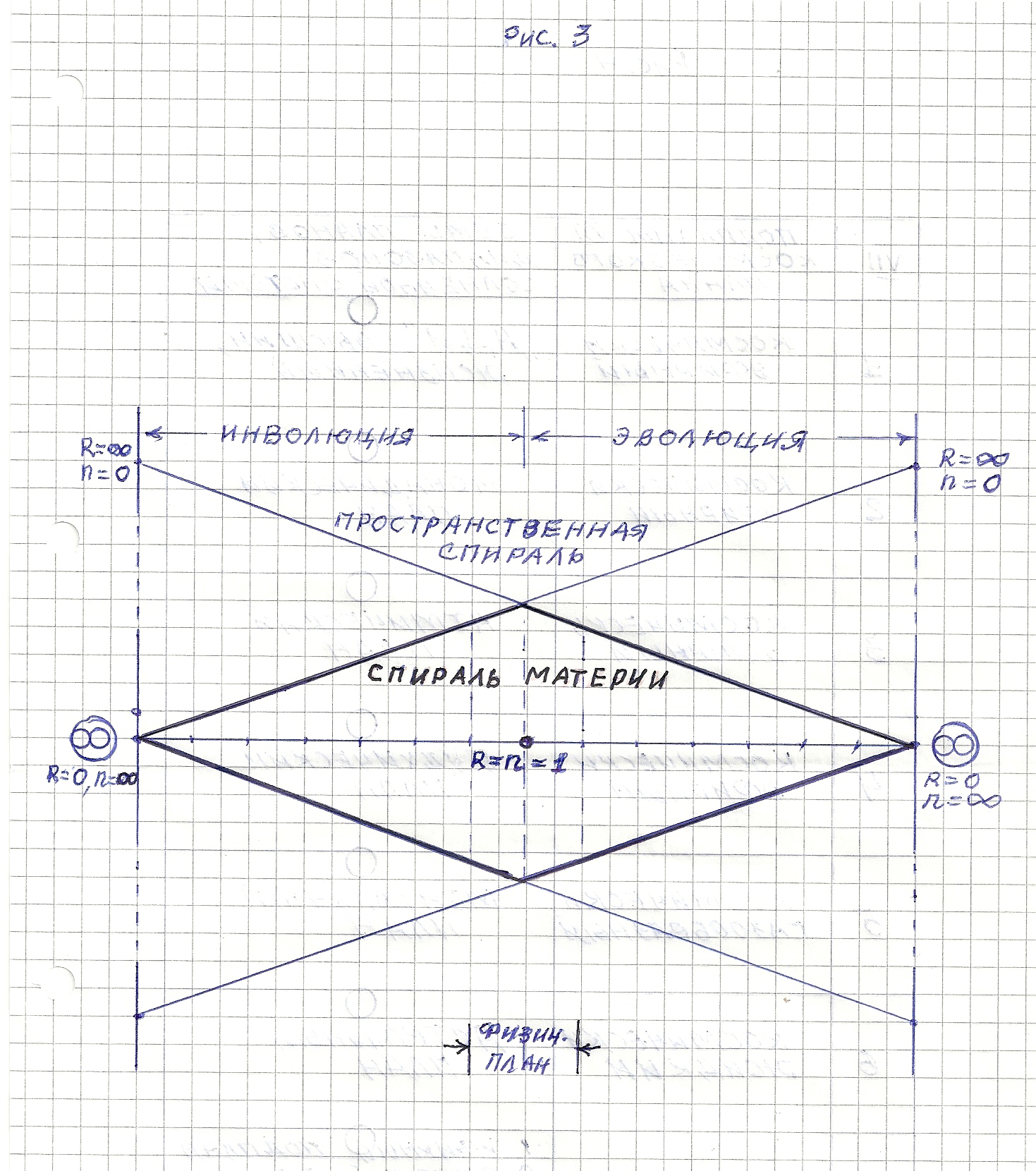 Переход абсолютного движения – НЕ-ЧИСЛА в движение – ЧИСЛО (в движение-энергию) происходит в нулевом центре, по закону спирали материи и в нулевом (ЛАЙЯ) пространстве, по закону пространственной спирали.