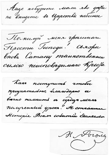 После кончины Гоголя в его бумагах были обнаружены обращение к друзьям, наброски духовного завещания, молитвы, предсмертные записи.
