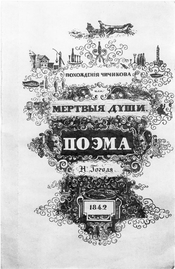 Из письма И.С. Тургенева к Полине Виардо. 1852В мае 1842 года в книжных лавках Москвы и Санкт-Петербурга появилась новинка – книга с затейливым рисунком на обложке, где разными шрифтами было написано: «Похождения Чичикова, или Мертвые души. Поэма Н. Гоголя». На желтоватом фоне чередовались разнородные, иногда просто загадочные изображения: домики с колодезным журавлем, бутылки с рюмками, танцующие фигурки, греческие и египетские маски, лиры, сапоги, бочки, лапти, поднос с рыбой, множество черепов в изящных завитках, – а венчала всю эту причудливую картину стремительно несущаяся тройка. В названии бросалось в глаза слово «ПОЭМА», крупными белыми буквами на черном фоне. Рисунок, выполненный самим автором, очевидно, был важен для него, так как повторился и во втором прижизненном издании книги 1846 года.