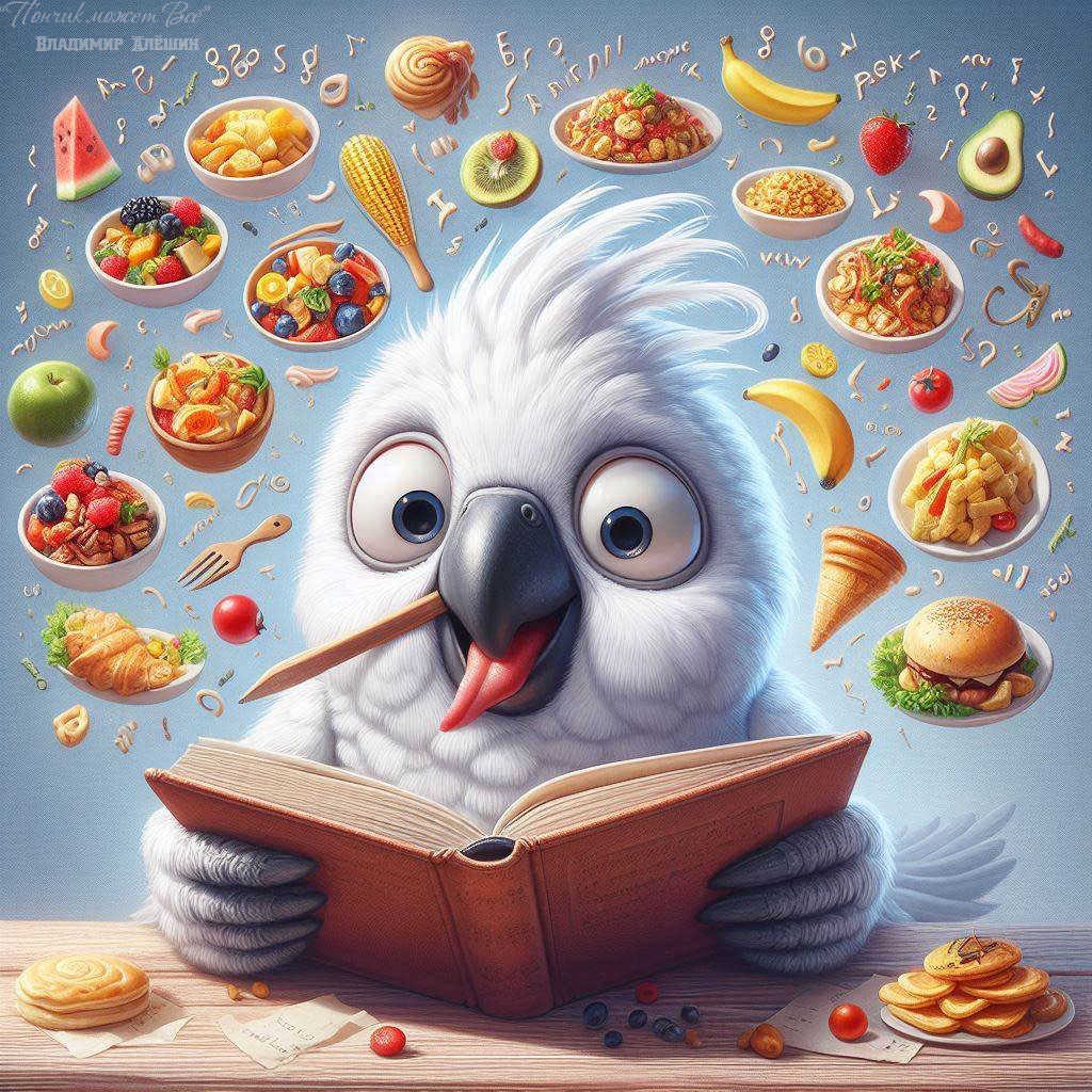 Как-то вернувшись с работы, он заметил, что попугай, сидя на подоконнике, увлеченно изучал какую-то старинную поварскую книгу.