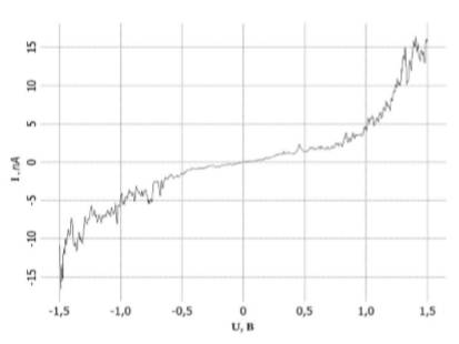 Исследованием сопротивления молекулы ДНК занимаются Т. И. Шарипов и Р. З. Бахтизин [15]. Они определили вольт-амперные характеристики молекулы, представленные на рисунке 7.