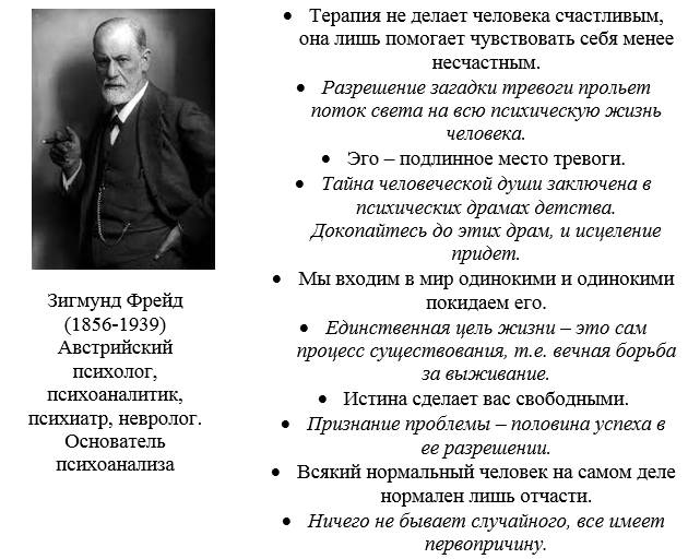Зигмунд Фрейд – гениальный мыслитель, «археолог» души, открыл новую эру в психологии, новый континент проблем в сфере современного понимания человека, его внутреннего мира. К творческим достижениям З. Фрейда, прежде всего, относятся: