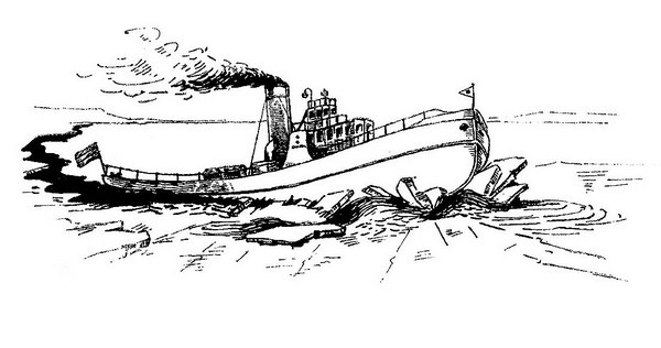 Парусные суда, даже приспособленные к плаванию во льдах, могли преодолевать лишь тонкий лед и продвигаться в нем на небольшие расстояния. Далее приходилось вручную прорубать канал чистой воды по курсу судна. Только с применением на судах паровой машины открылись широкие перспективы для активного ледового плавания.[рис. 002 б]