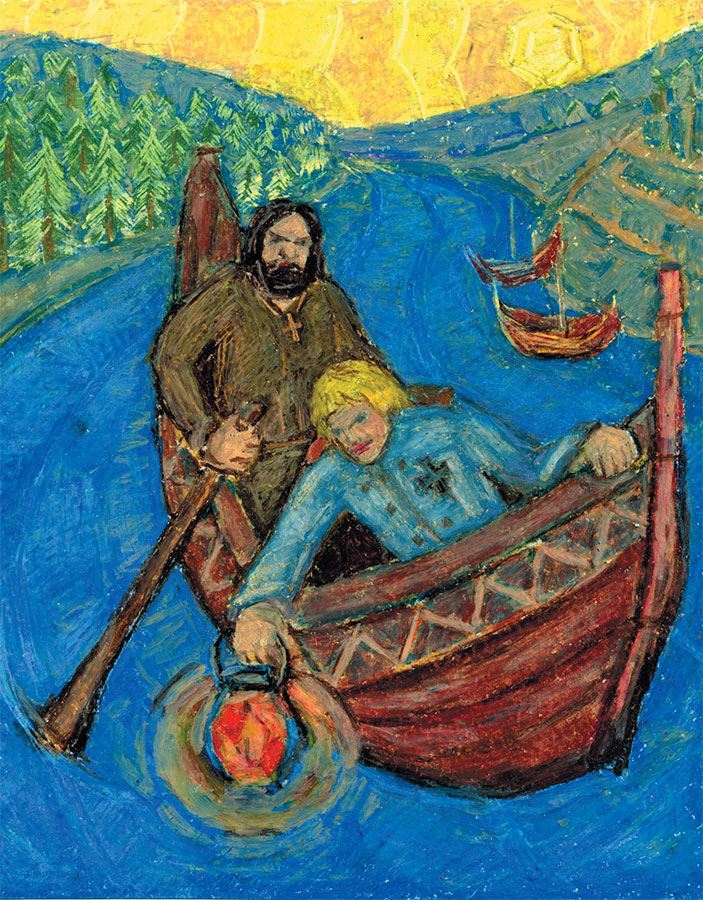 Едва уговорил Иван утром капитана Ефрема Селиверстовича оказать ему помощь, веслами поработать. Старший Нухчиев сразу же отказался, как отрезал из суеверия, и сыну запретил, хотя мальчишка и рад был бы пособить. Но лампу керосиновую одолжил, хотя, крякнув сердито, припомнил и сатану и черта. Как-то народ то дело пронюхал, но, видать, слухом земля полнится, а потому к полудню весь работящий люд – шкипера, сплавщики, матросы, грузчики и девки с бабами – уже у лодки Ивановой ждали, семечки лузгали да посмеивались лукаво. Однако Ивану было не до смеха – серьезен был Ваня. И Ефрем, хоть и не верил в дело это сумнительное, но, видя такую серьезность, прежде чем за весла взяться и сам перекрестился. Вот дело то чудное! Как склянки на судах полдень пробили, выгреб Ефрем напротив горы большой – Песчанки, на середину реки, развернулся к озеру и погреб к Ладоге без спешки. Иван в это время лампу зажёг и с носа лодки склонился, в воду речную заглядывает. Стихли все, кто на берегу стоял, даже семечки лузгать перестали. Тишина! Только вода о борт лодки поплескивает да чайки визжат, как смеются. Так догребли они чуть ли не до озера. И народ вдоль по берегу шествует, но как видит, что ничего не происходит, опять начинает пересмеиваться. Ефрем лодку развернул встречь течения и назад к Песчаной горе гребет. И народ по берегу им вслед – ну, чисто крестный ход! Доплыли они до Песчанки. На берегу жена Ефремова, что прибежала с деревни, про чудачество мужа прослышав, как завизжит во всю глотку: «А-вой-вой, Яфрем, знать, совсем сдурел старый пень на старости-то годов! Посмотрите, люди добрые, на двух дураков: один старый, другой ранетый! Нет бы рыбу ловить да сети чинить, так нет! – они с фонарем средь бела дня по речке шлындают!»