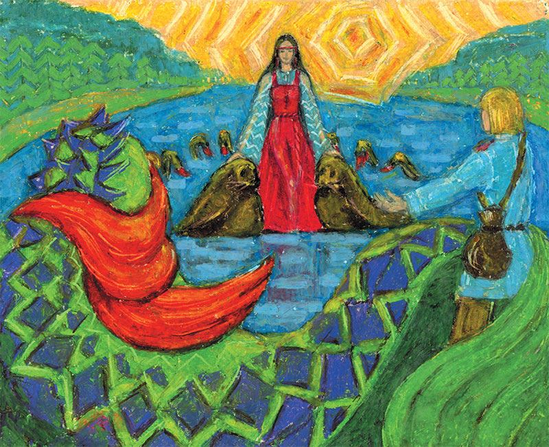 – Батюшка Иисти, прости, что не могу отблагодарить тебя за добро, что ты мне, сироте, сделал! Отпусти меня из русалок к людям ради Бога! Люблю я Ваню, и если он в жены меня взять захочет, то верней меня жены во всем свете не сыщешь, а меня счастливее!