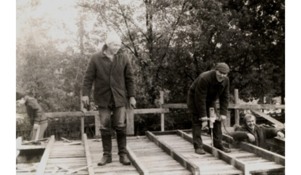 Поначалу предполагалось, что дом будет построен на основе деревенского строительства без единого гвоздя. Однако позже выяснилось, что без гвоздей всё-таки не обойтись. Тогда заказали медные гвозди. Какое-то время мы учились забивать в дерево эти довольно длинные гвозди. На банкете по поводу окончания строительства наш самый умелый экспериментатор Дима дарил на память присутствующим копию медного гвоздя – гвоздь, отлитый из резины.