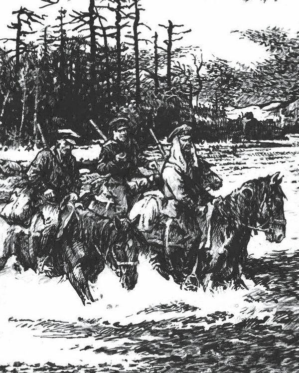Величавая тишина леса сразу огласилась звуками топоров и голосами людей. Стрелки стали таскать дрова, рассёдлывать коней и готовить ужин.