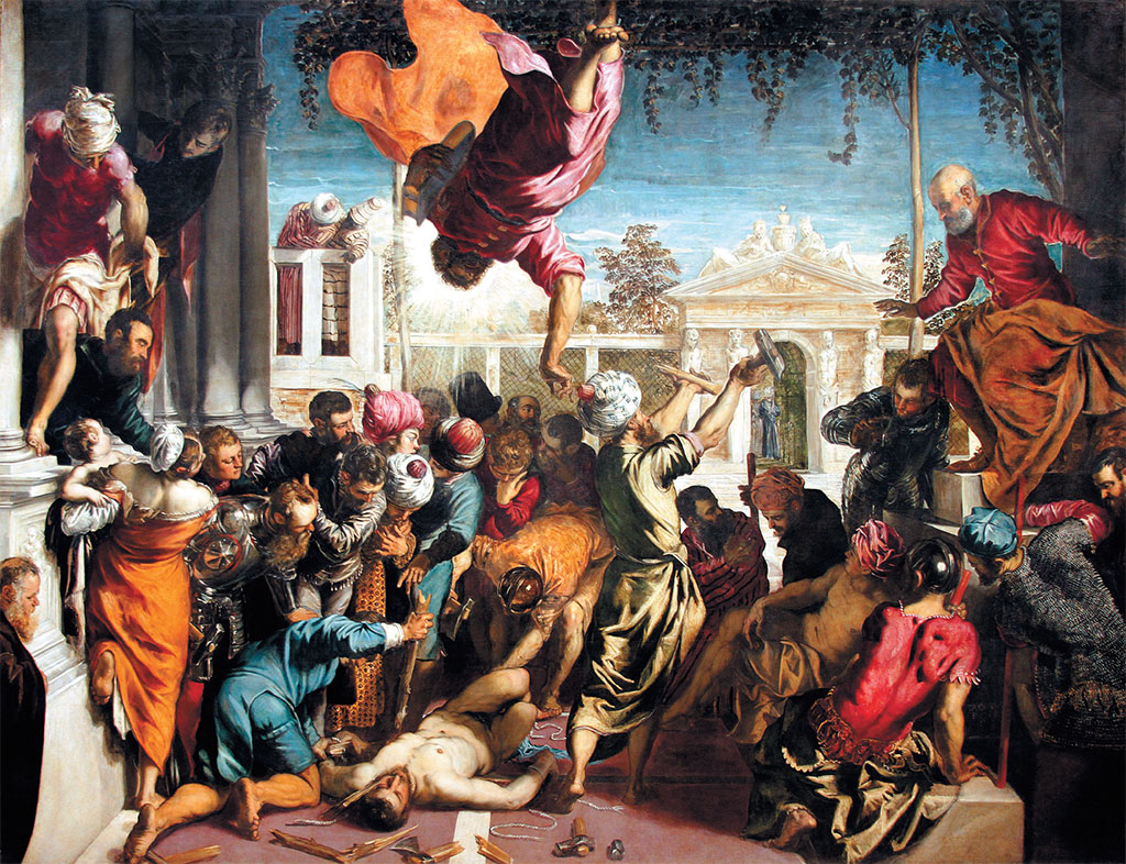 Выразительность форм и насыщенная цветовая гамма из крупных пятен красного и синего создают впечатление чуда, происходящего на глазах у смятенной толпы. Стремительно летящий вниз головой святой Марк в развевающейся алой одежде останавливает казнь несправедливо осужденного.
