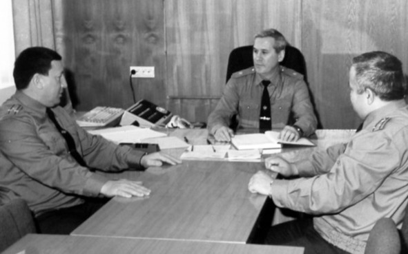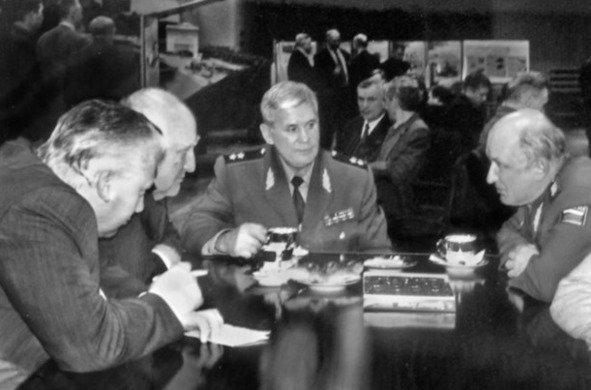 В кабинете начальника 46-го ЦНИИ МО генерал-майора А. А. Рахманова. Слева полковник С. В. Зверев, справа майор А. Н. Сулейманов