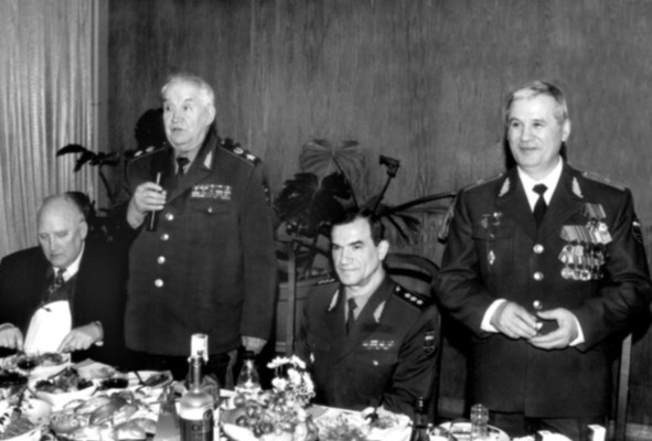 На 55-летнем юбилее А. А. Рахманова. Слева направо: академик А. Г. Шипунов, генерал армии М. А. Гареев, генерал-полковник Н. А. Баранов. 2003