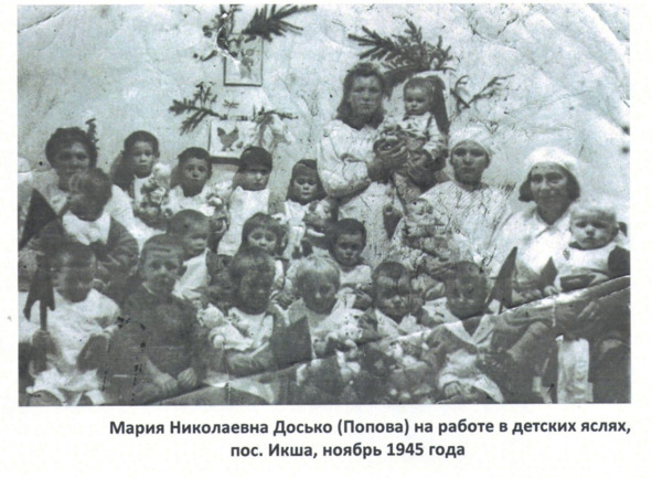 В разные годы члены семей Поповых работали в поселке Икша водителями в автохозяйстве, бухгалтером в управлении канала имени Москвы, экскаваторщиком в карьере, в мастерской по ремонту обуви, обслуживали оборудование и схему водоснабжения поселка, в охране пионерского лагеря, няней в детских яслях, вместе с жителями поселка сажали елочки в окрестностях поселка. Как памятник жителям на местах этих посадок выросли красивые еловые аллеи.