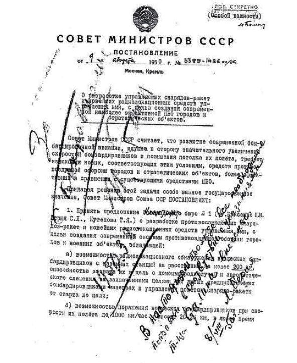 Послевоенный переход в авиации на использование реактивных двигателей привел к качественным изменениям в противостоянии средств воздушного нападения и средств противовоздушной обороны. Резкий рост скорости и максимальной высоты полета самолетов-разведчиков и бомбардировщиков свели практически к нулю эффективность зенитной артиллерии среднего калибра. Выпуск отечественной промышленностью зенитных артиллерийских комплексов в составе зенитных орудий 100- и 130-мм калибра и радиолокационных средств орудийной наводки не могли гарантировать надежной защиты охраняемых объектов. Первым объектом зенитно-ракетной обороны, требовавшим обеспечения надежной обороны, руководством страны была определена столица государства – Москва Постановление Совета Министров СССР М9 3389—1426 на разработку первой отечественной стационарной зенитно-ракетной системы для Войск ПВО страны, подписанное 9 августа 1950 года, было дополнено резолюцией И.В.Сталина: «Мы должны получить ракету для ПВО в течение года».