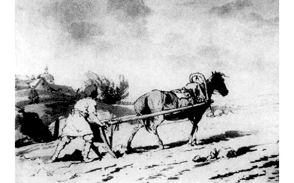 Д. А. Аткинсон. Пашущий крестьянин. Раскрашенная гравюра. Государственный Эрмитаж
