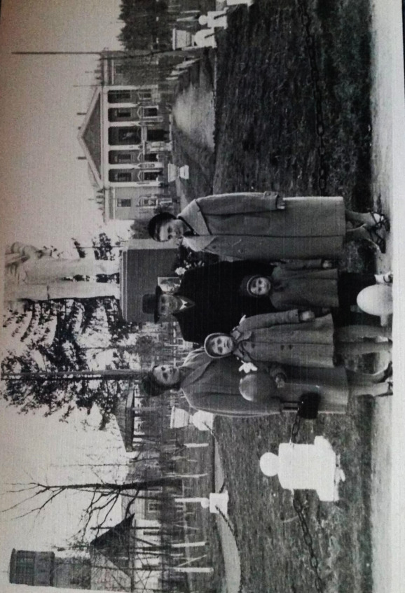 Танцевальная площадка под крышей, деревянный заборчик вокруг парка, старый памятник Козлову, вазы под цветами, скульптурные композиции, цепи между столбиками, колонны у входа… только памятник Вождю остался.. и память о тех людях. На фото семья офицера в/ч 52147 В. И. Катыхина