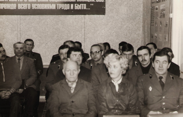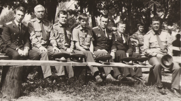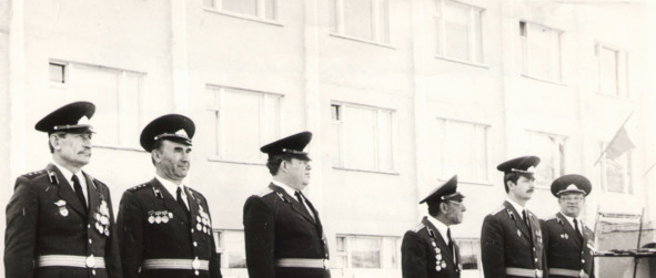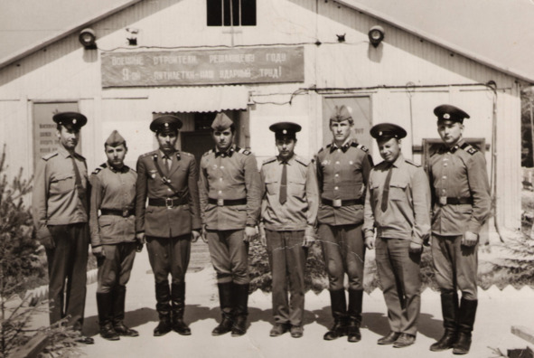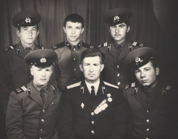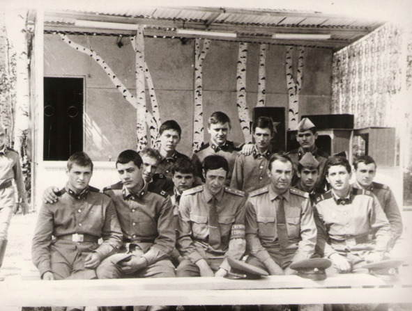 Третий слева зам. ком. 3 роты по политчасти В. М. Хлопков, четвёртый-пропагандист части капитан Мишустин С. И., пятый- -нач. штаба части майор Шустик Юрий Владимирович, шестой- зам. по тылу части маор В. А. Щепалкин, седьмой- прапорщик Ушаков Л. А.