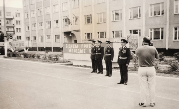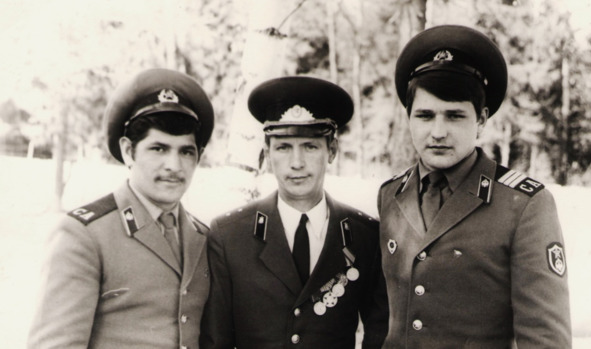День Победы 9 мая 1979 г.. Слева направо – командир части Остапенко Л. Ф., ВРИО зам. полит части Агаев В., Козяр С. Д., – старшина 3 роты, зам. по тылу части Барков В. К., нач. штаба части Сухарев А. М.