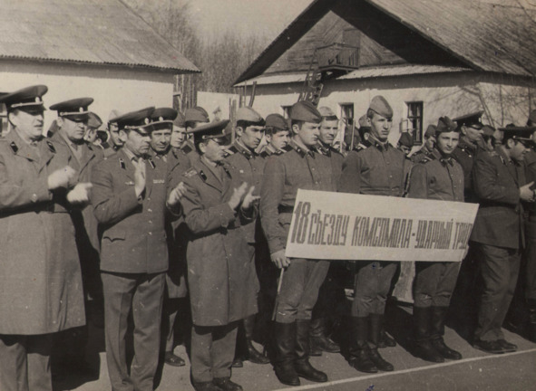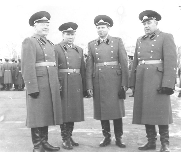 На фото 1980 г. – подполковник Клапчук Виталий Дмитриевич, подполковник в отставке, секретарь парткомиссии гарнизона Трудовая (третий слева). Рядом К. Ш. Гиниатулин, Г. Н. Грибов, Ю. М. Анисимов