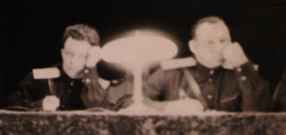 Командир части Пустеленин В. И., начальник политотдела Беляков В. И. в парадном расчёте