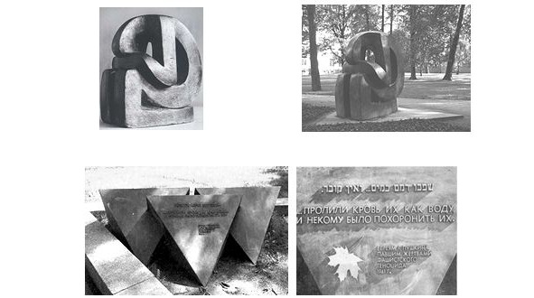 Лишь полвека спустя, в 1991 году евреи Петербурга смогли увековечить память своих соплеменников, погибших в Пушкине, и установить им достойный памятник. Основу мемориала составила работа выдающегося российского скульптора Вадима Сидура «Формула скорби», которая существовала в виде модели. На ней явно обозначена сутулая спина и поникшие плечи. На коленях – руки, на них опущена голова.