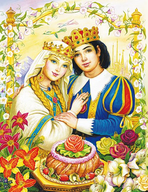 – Государь ты мой батюшка родимый! Не вози ты мне золотой и серебряной парчи[1], ни мехов чёрного соболя, ни жемчуга бурмицкого[2]; а привези ты мне золотой венец из камениев самоцветных, и чтоб был от них такой свет, как от месяца полного, как от солнца красного, и чтоб было от него светло в тёмную ночь, как среди дня белого.