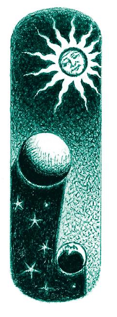 Скажем слово о Луне: она спутник, провожатый наш; она такой же шар, как и Земля наша, только в тринадцать раз поменьше. Она катится вокруг Земли, как Земля вокруг Солнца. Но есть малая разница: Земля летит вперед покатом и потому сама, оборачиваясь вокруг оси своей, поворачивает к Солнцу посменно все лицо свое, все стороны; а Луна бежит так, что показывает Земле всегда одну и ту же сторону, одно лицо. Это то же, что привязать ядро или яблоко на веревку и пустить его вокруг головы.