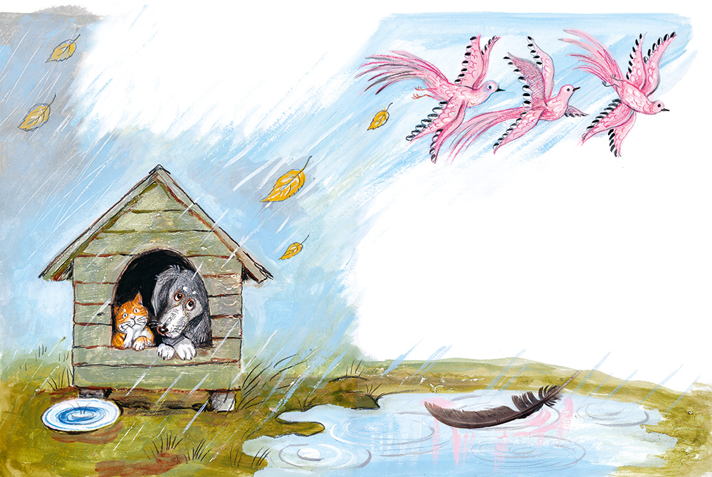 Махнул старик-годовик четвёртый раз – и полетели ещё три птицы. Подул холодный ветер, посыпался частый дождь, залегли туманы.