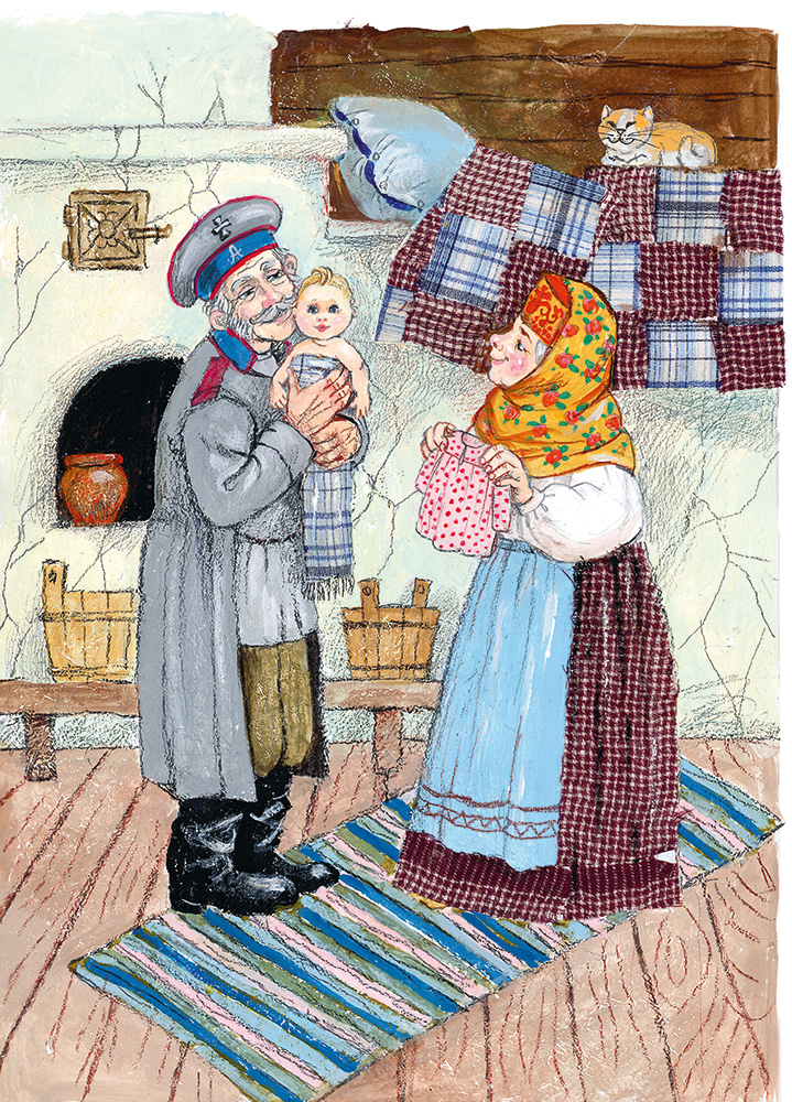 Вот старики обрадовались, вынули её, да ну старуха скорее шить да кроить, а старик, завернув Снегурочку в полотенечко, стал её нянчить и пестовать[2]: