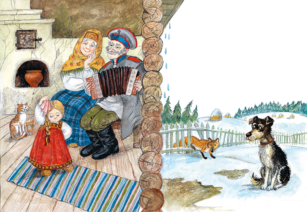 Всё шло у стариков как по маслу: и в избе хорошо, и на дворе неплохо, скотинка зиму перезимовала, птицу выпустили на двор. Вот как перевели птицу из избы в хлев, тут и случилась беда: пришла к стариковой Жучке лиса, прикинулась больной и ну Жучку умаливать, тоненьким голосом упрашивать: